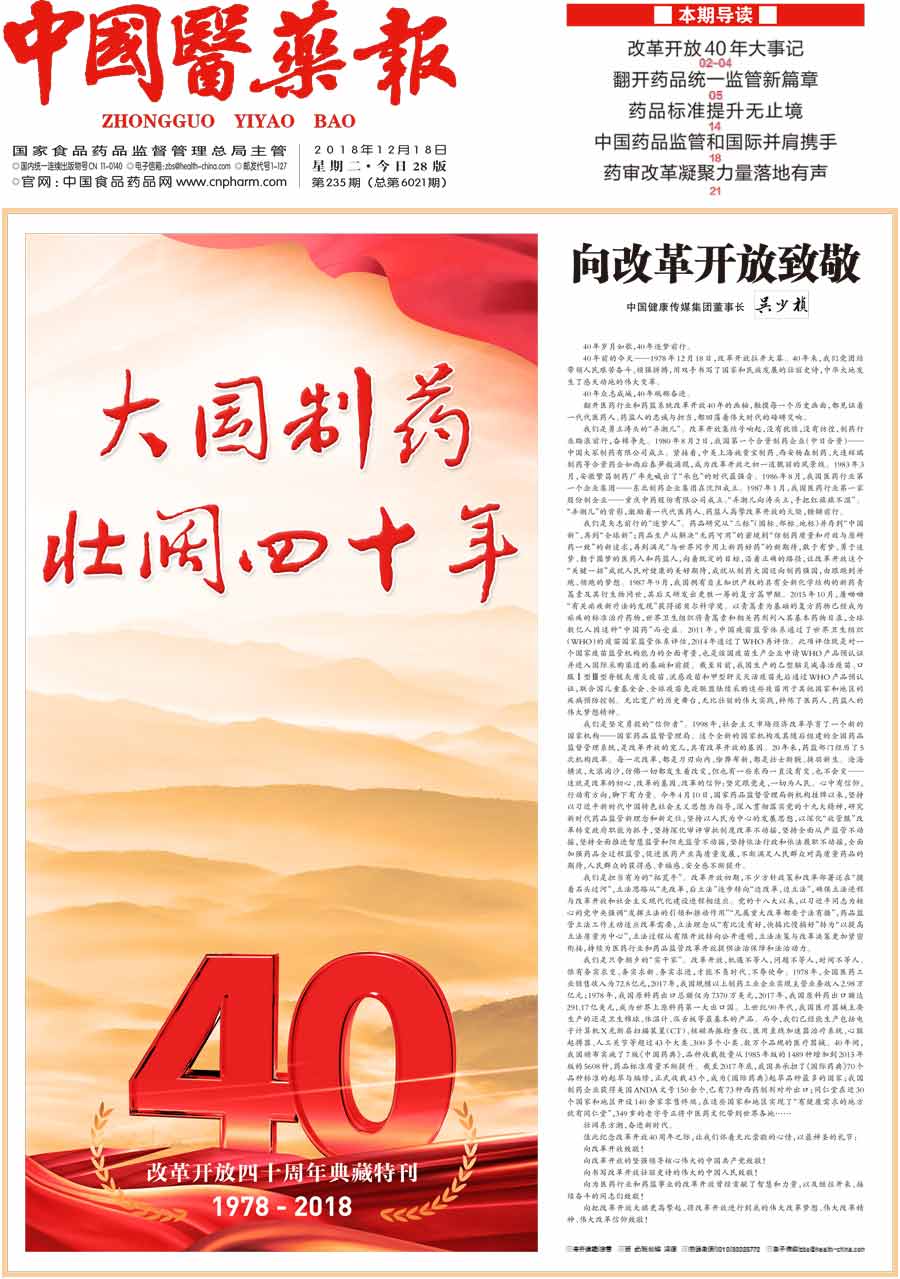 國家大力推行的藥品審評審批制度改革,為行業高質量發展凝聚力量,更是值得業界銘記和期待。