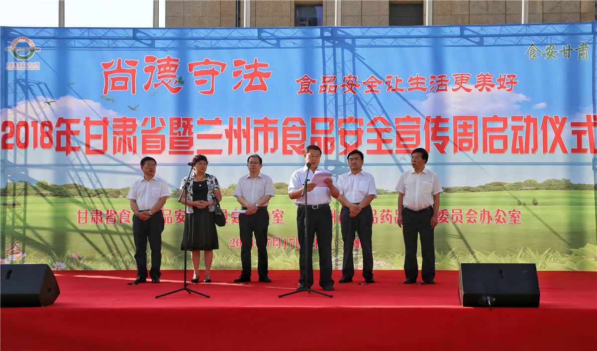 7月17日,甘肅省食品安全宣傳周啟動儀式在蘭州舉行。此次食品安全宣傳周活動由甘肅省食品藥品安全辦、省文明辦、省公安廳、省農牧廳、省衛生計生委等22個單位共同主辦,蘭州市食品藥品安全辦協辦。